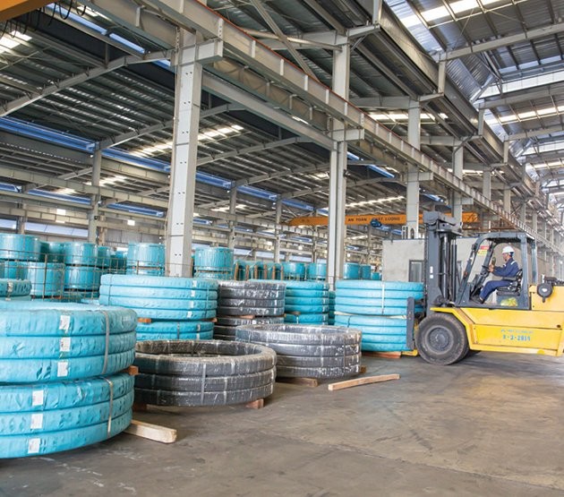 With a strategy to promote deep processing and increasing added value to Hoa Phat Group’s steel product chain, the Hoa Phat Metal Producing Co Ltd has focused on production of high quality drawn steel wire, prestressed steel and flange to replace imported products.