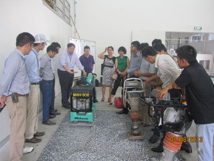 Sau khi được đào tạo lý thuyết tại Hà Nội, các học viên có buổi thực hành tại Nhà máy Mikasa Việt Nam (KCN Thăng Long 2, Hưng Yên). Trong quá trình vận hành thử, các học viên của TBPT Hòa Phát nêu ra ý kiến phản hồi thường gặp của khách hàng khi sử dụng các sản phẩm đầm, lu của Mikasa và học hỏi thêm kinh nghiệm khắc phục lỗi thiết bị nếu có.