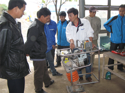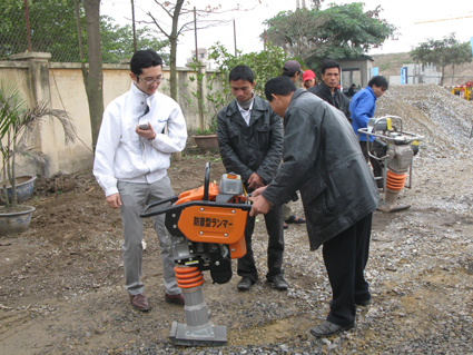 Ông Mukai Koichiro trực tiếp hướng dẫn khách hàng cách sử dụng, bảo trì máy