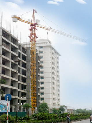 Cẩu tháp Hòa Phát trang bị cho dự án xây dựng nhà ở Vĩnh Hoàng (Hà Nội)